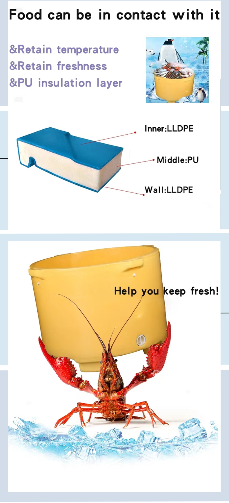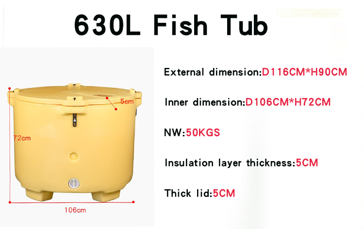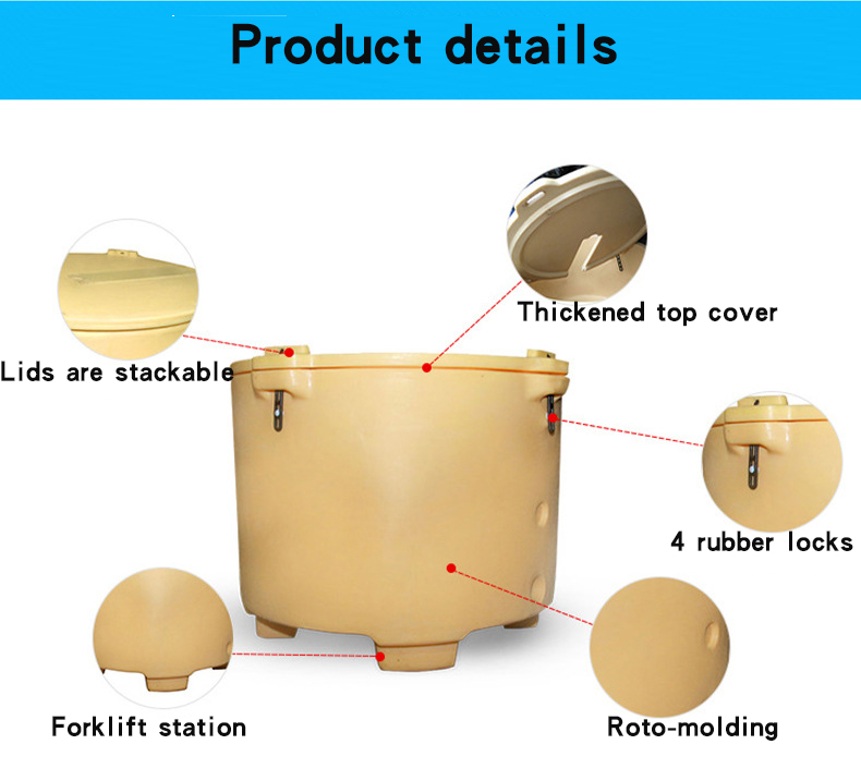 Boright's round 630L rotationally molded insulated fish box container is a prime example of advanced insulated fish tubs designed for optimal freshness preservation. As a plastic fish tub, it boasts durability and rotomolding construction, making it easy to handle and transport. This insulated plastic box is specifically engineered to serve as an insulated box for fish and a cooler box, ensuring that your catch remains fresh and chilled during transportation or storage.